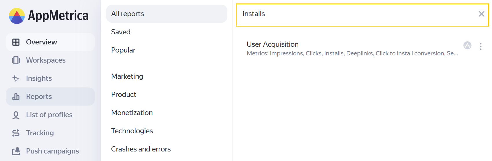In the AppMetrica web interface, you can view statistics on mobile app usage. To collect statistics, you need to integrate the AppMetrica SDK in the app.