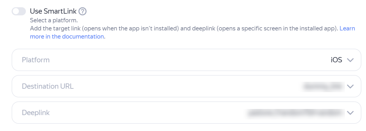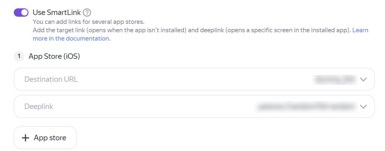 If you disable SmartLink, you can create a tracker for only one operating system: either iOS or Android. In this case, you need to set up separate URLs for your re-engagement or app-to-app deeplinks. These URLs aren't combined with the tracking link and don't automatically redirect the user.