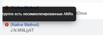 Если mapping или dSYM-файл не был загружен при сборке приложения, в списке групп будет отображаться предупреждение о несимволизированных ANR.
