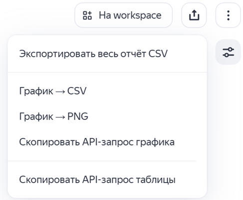 PNG. - Скопировать API-запрос графика — выводит текст запроса для выгрузки данных графика с помощью API отчетов.