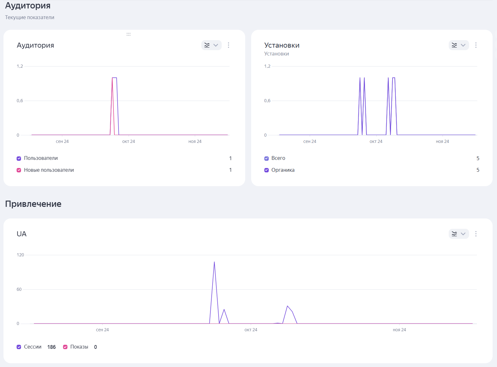 Воркспейс — набор виджетов с данными AppMetrica. По умолчанию в AppMetrica доступен основной воркспейс Обзор. В разделе Workspaces вы можете создавать собственные воркспейсы под любые задачи вашего приложения и под нужды каждой команды. На воркспейс можно добавлять различные виджеты и менять их порядок. Каждый виджет ведет в соответствующий отчет.